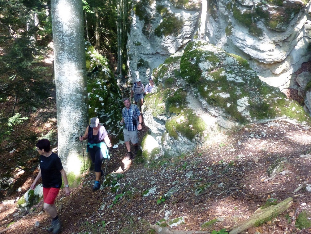 Nach Räumung der Zimmer ging es am nächsten Morgen nach Albstadt-Burgfelden zum „Felsenmeersteig“ – eigentlich dem längsten der Albstädter Traufgänge mit den meisten Höhenmetern. Durch geschickte Abkürzungen, die Wanderführer Klaus Fick bei seiner Vorwanderung erkundet hatte, blieben uns die meisten Höhenmeter aber erspart, ohne die Highlights dieser Rundtour zu versäumen. Nach großartigen Ausblicken vom Böllat ging es zur Ruine Schalksburg, weiter über das Felsenmeer zum Heersberg. Von hier wanderten wir wieder am Trauf entlang, nicht mehr weit nach Burgfelden zur Schlusseinkehr vor der Heimfahrt.