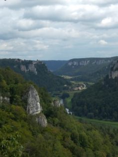 Immer wieder ergaben sich Ausblicke auf den „Schwäbischen Grand Canyon“, wie die junge Donau hier auch bezeichnet wird. Nach Schloss Bronnen erwartete uns noch ein felsiger und steiler Abstieg zum bereits bekannten Jägerhaus, bevor der Schlussaufstieg zum Knopfmacherfelsen bei einsetzendem Regen erfolgte.