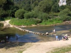 Donauüberquerung bei der Vorwanderung – einige Trittsteine waren da noch weggespült!
