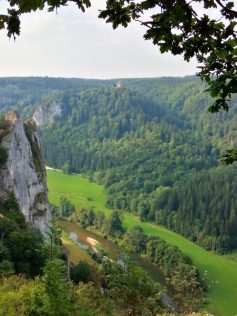 Die Donauwelle „Eichfelsen-Panorama“ nahmen wir am nächsten Tag in Angriff. Von Beuron führte ein unmarkierter Pfad steil hinauf zum Wanderheim „Rauher Stein“ mit dem gleichnamigen Aussichtsfelsen. Etwas später ergab sich vom Eichfelsen ein ganz neues Panorama vom Donaudurchbruch.