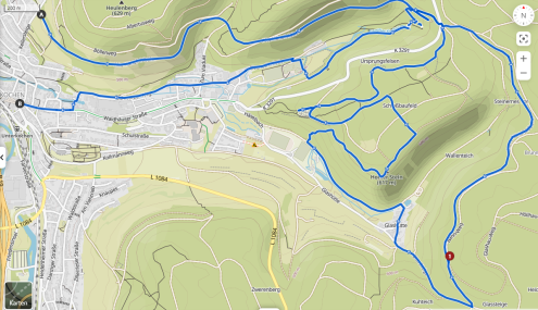 Auf Forstwegen ging es weiter. Da der Abstand innerhalb der Gruppe relativ groß war musste eine Suchaktion nach 3 Teilnehmern erfolgen, die an einer Wegkreuzung falsch abgebogen waren. Nachdem alle wieder zusammen waren folgte ein steiler, teilweise rutschiger Abstieg nach Glashütte. Weniger schlimm war, dass sich dabei eine Teilnehmerin auf den Allerwertesten setzte und etwas den Hang hinunterrutschte.