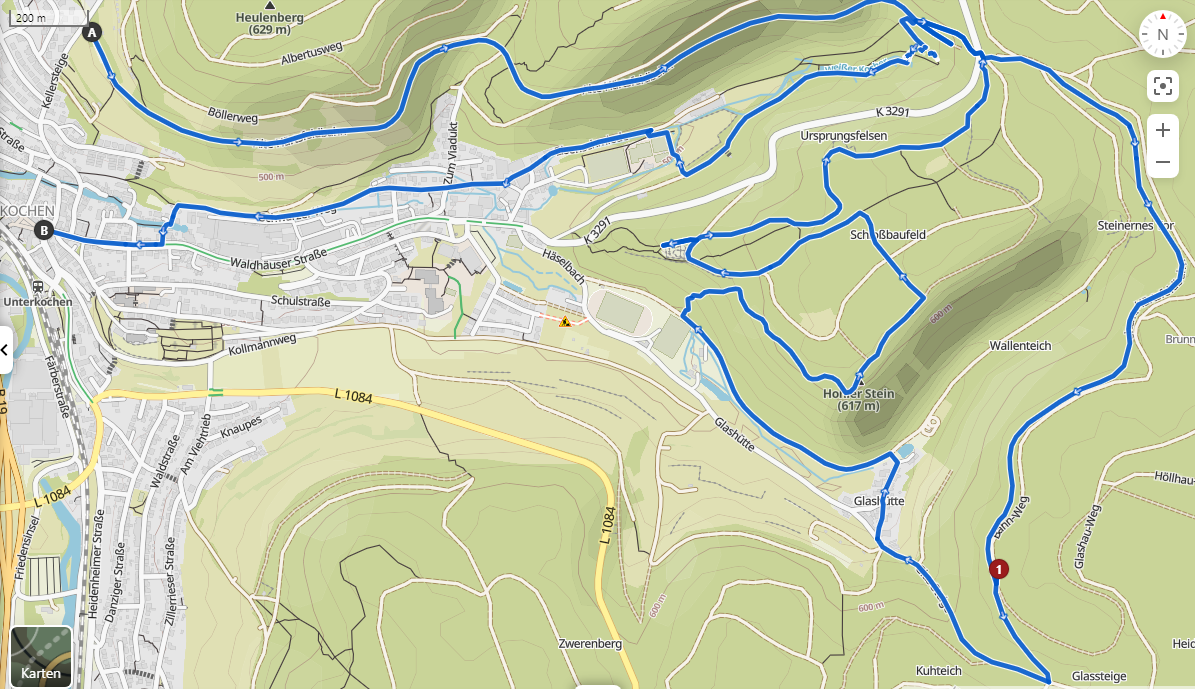 Kathi führte die „kleine“ Tour – Ziele waren ebenfalls die Burgruine und die Kocherquelle ohne die Ab- und Anstiege bei Glashütte.