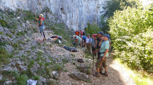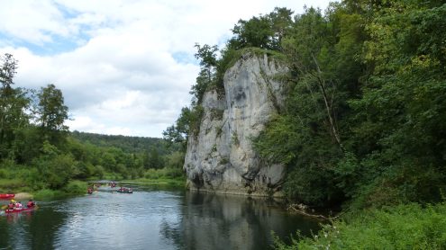 Deshalb wurde die für den nächsten Tag geplante Tour auf Felsen links und rechts der Donau gekürzt – wir nahmen uns nur 1 Donauseite für den Aufstieg vor. Die Tour führte die Hälfte der Gruppe von Neidingen auf den Schaufelsen während die andere Hälfte den Lenzenfelsen auf der rechten Talseite bestieg. In der Fallhütte Neidingen trafen sich beide Gruppen wieder.