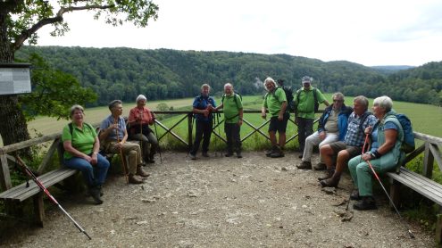 Mit 19 Wanderfreunden startete die Ortsgruppe am 31.08. zu 4 Wandertagen ins Donaubergland. Ziel und Übernachtungsquartier war das Berghaus Knopfmacher – direkt auf dem Knopfmacherfelsen mit Blick zum Kloster Beuron gelegen.