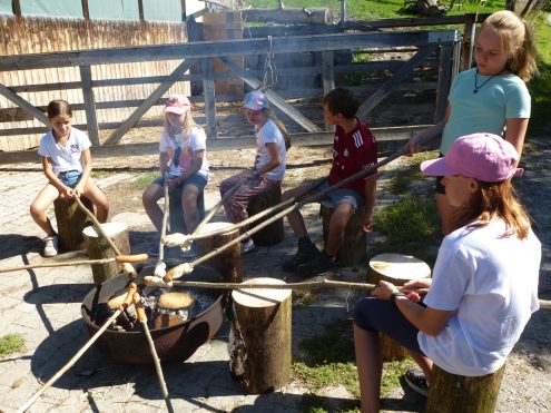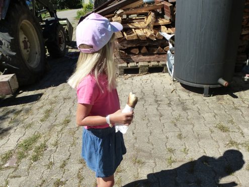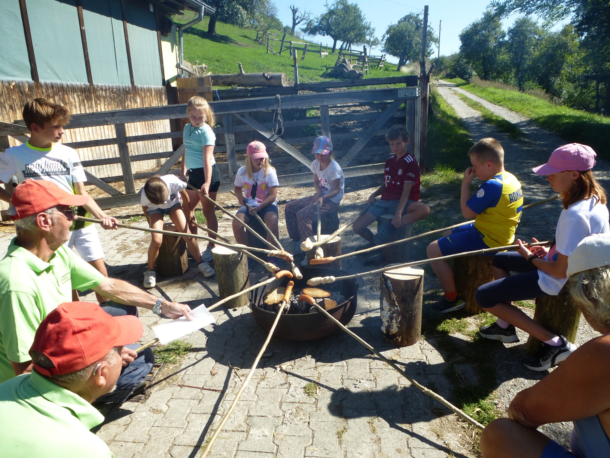 Nach soviel Arbeit hatten sich die Kinder auch was nahrhaftes verdient. Beim Backen von Stockbrot auf Holzstecken entwickelten sich viele Bäckertalente, auch die selbst gegrillten Roten Würste und Bratäpfel waren sehr lecker.