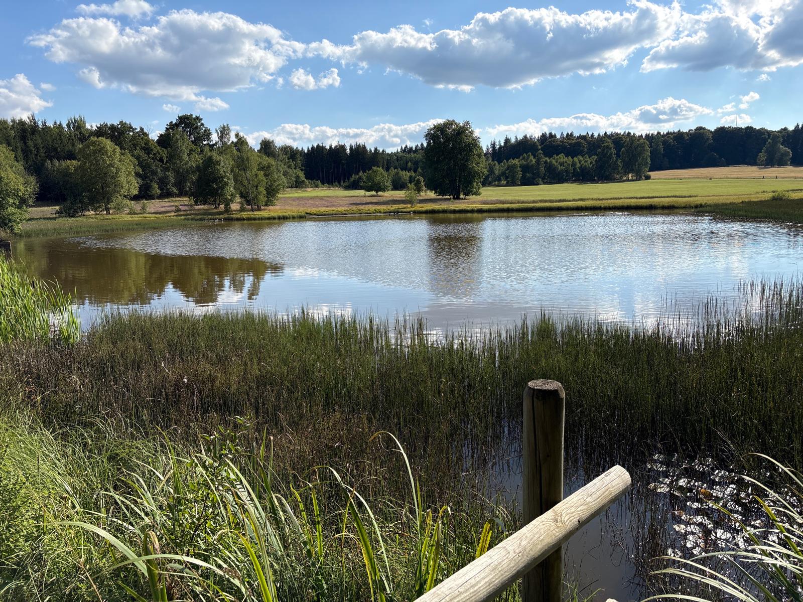 Dort starten wir unsere Wanderung durch das Naturschutzgebiet „Weiherwiesen“. Anschließend genießen wir auf ebenen Waldwegen pures Waldbaden. Mehrere kleine Waldhütten und kleine Weiher liegen auf unserer Strecke und laden zum Verweilen ein.