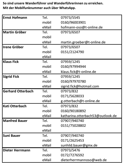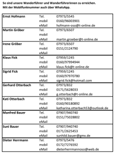 So sind unsere Wanderführer bei Rückfragen zu errreichen (bitte anklicken, dann werden die Daten größer angezeigt):